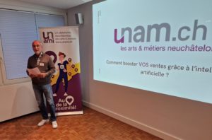 Grâce à l’IA, comment procède un artisan de la hi-fi pour enregistrer des commandes, produire à la demande et commercialiser ses produits en Suisse et dans le monde entier ? Grâce à l’IA encore, comment un garagiste sélectionne-t-il ses meilleurs prospects ? Grâce à l’IA toujours, comment un hôtel fait-il la nique aux grandes plateformes de booking ? Grâce à l’IA enfin comment une entreprise de la construction attire-t-elle de l’attention sur les réseaux ? En répondant à ces questions avec des cas réels, Stéphane Fallet de Rapid Rise a démontré le potentiel de l’IA pour des PME des arts & métiers. En ouverture, Mario Stoppa (Stoppa Frères – Plâtrerie – Peinture) a répondu à la question: « L’IA, c’est quoi pour moi ? »